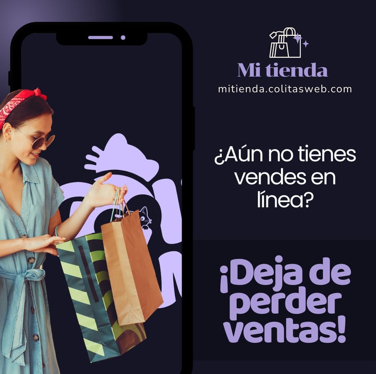 ¿Tienes un negocio, pero no cuentas con una tienda online? ¡Es momento de dar el gran salto! En ColitasWeb diseñamos tiendas en línea personalizadas que convierten tus seguidores en clientes y llevan tu marca al siguiente nivel.